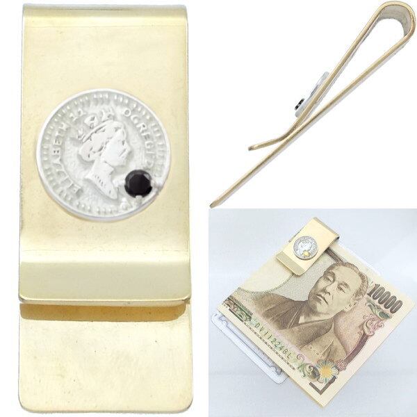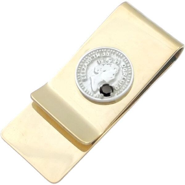 ★エリザベス女王のシルエットの小さめコインモチーフがワンポイントのブラスマネークリップ。