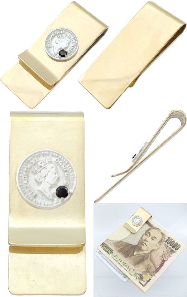 ブラックCZ ホワイト エリザベス コイン スリム ブラスマネークリップ*BM-1035