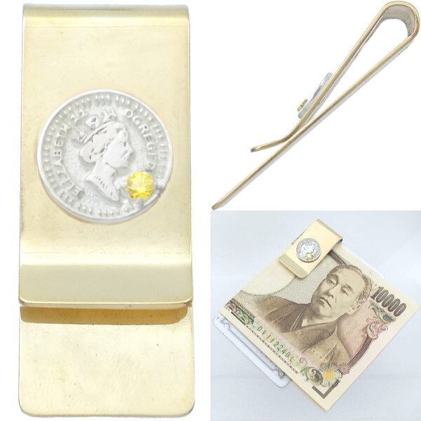 ★エリザベス女王のシルエットの小さめコインモチーフがワンポイントのブラスマネークリップ。
