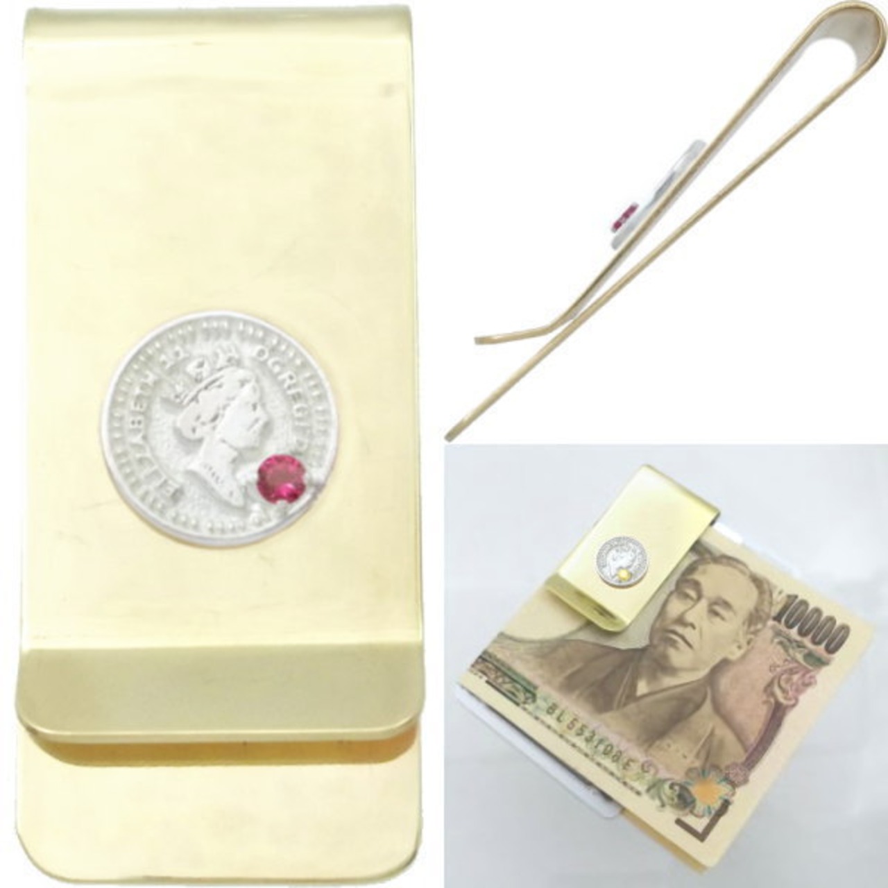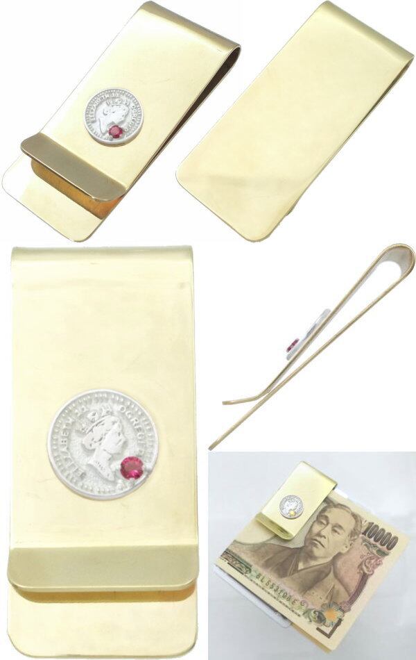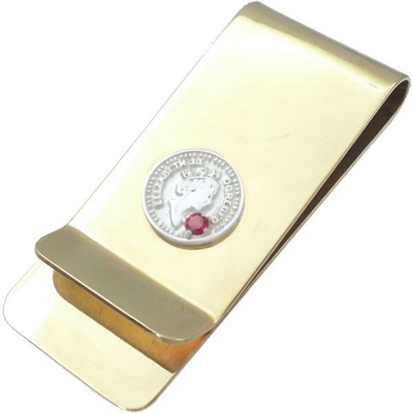 (7月)ルビー ホワイト エリザベス コイン ブラスマネークリップ 誕生石*BM-1037