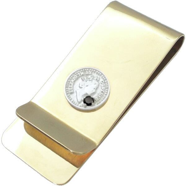 ブラックCZ ホワイト エリザベス コイン ブラスマネークリップ*BM-1037
