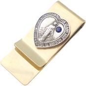 ★ハート型のマリアメダイと誕生石のさり気ないコンビのブラスボディマネークリップ。