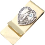 ★ハート型のマリアメダイと誕生石のさり気ないコンビのブラスボディマネークリップ。