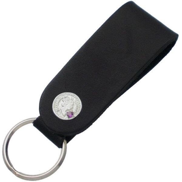 (2月)アメジスト ホワイト エリザベス コイン ブラックレザー キーホルダー 誕生石*BH-028
