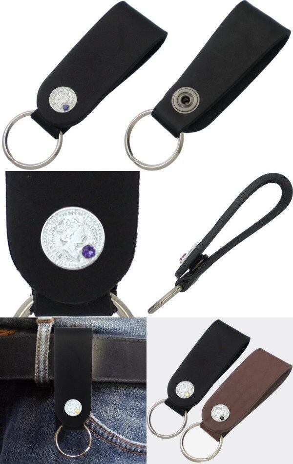 ★エリザベス女王のシルエットの小さめコインモチーフのサドルレザー製キーホルダー。
