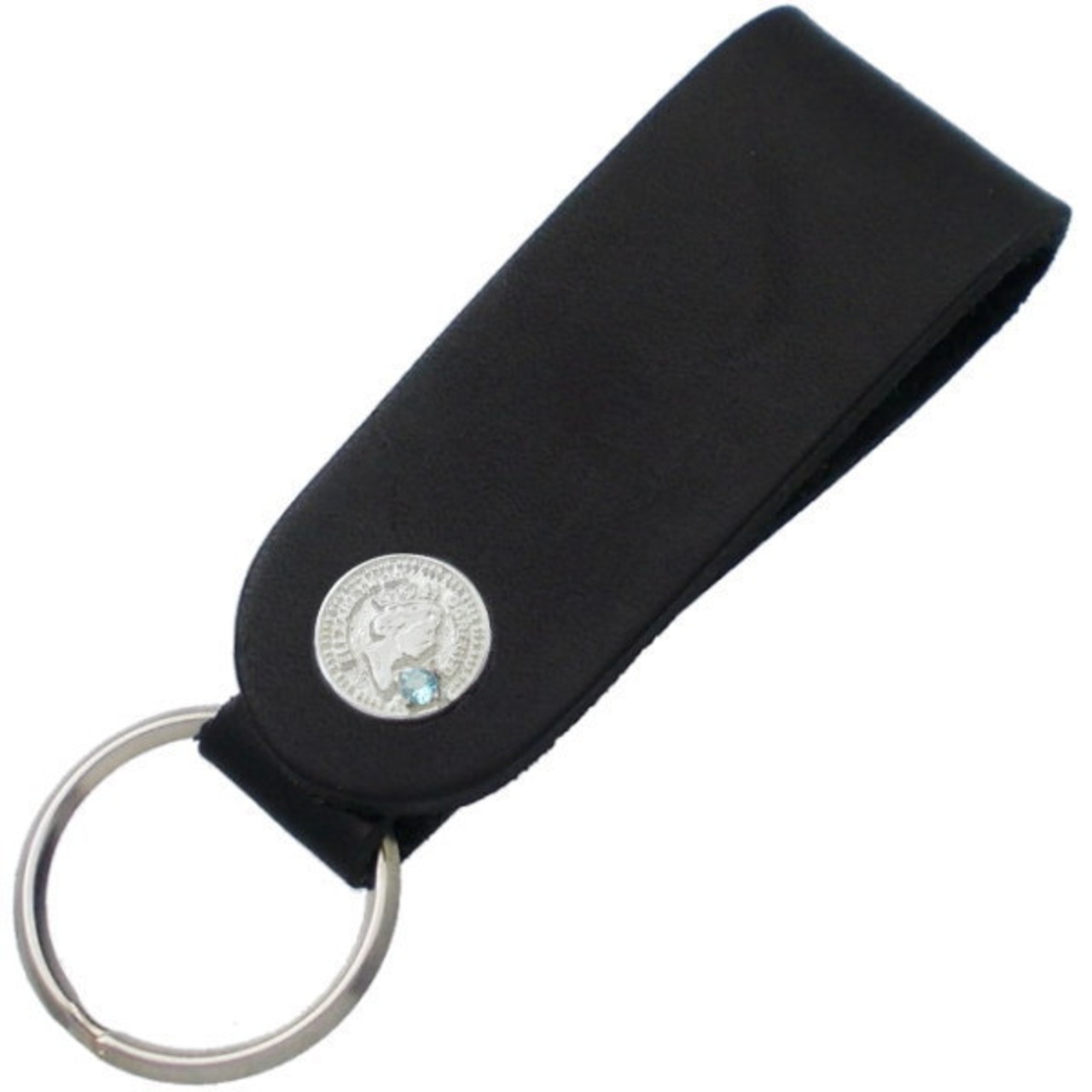 (11月)ブルートパーズ ホワイト エリザベス コイン ブラックレザー キーホルダー 誕生石*BH-028