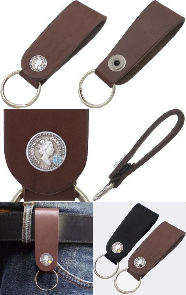 ★エリザベス女王のシルエットの小さめコインモチーフのサドルレザー製キーホルダー。