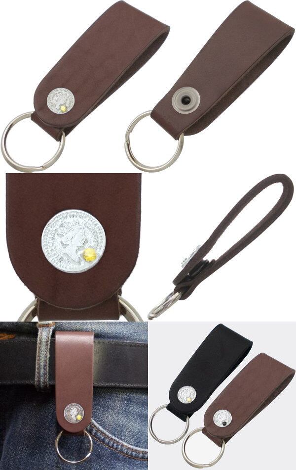 ★エリザベス女王のシルエットの小さめコインモチーフのサドルレザー製キーホルダー。