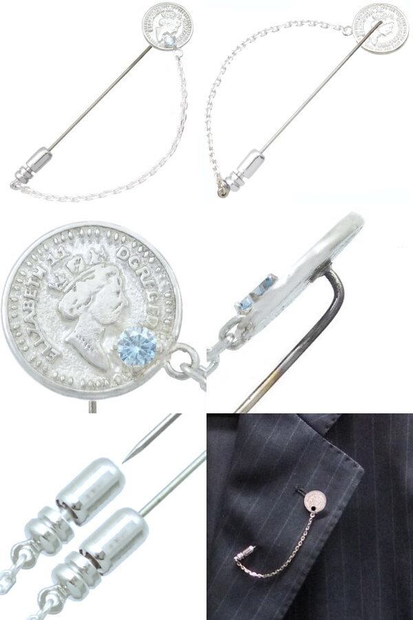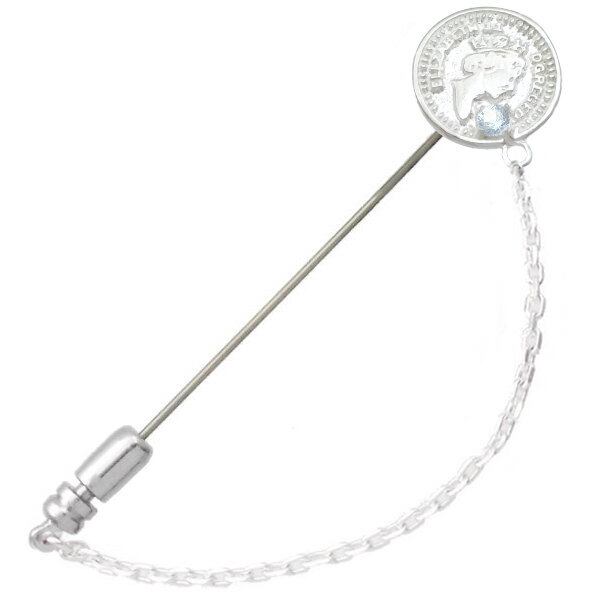 (3月)アクアマリン ホワイト エリザベス コイン チェーン シルバー ラペルピン 誕生石*BK-1219