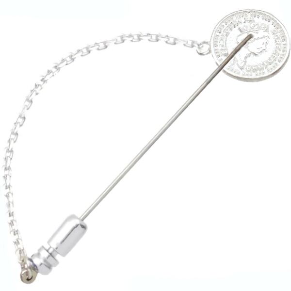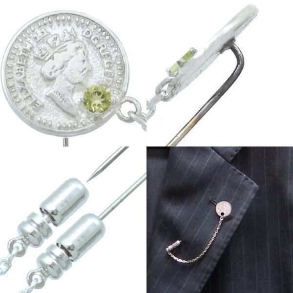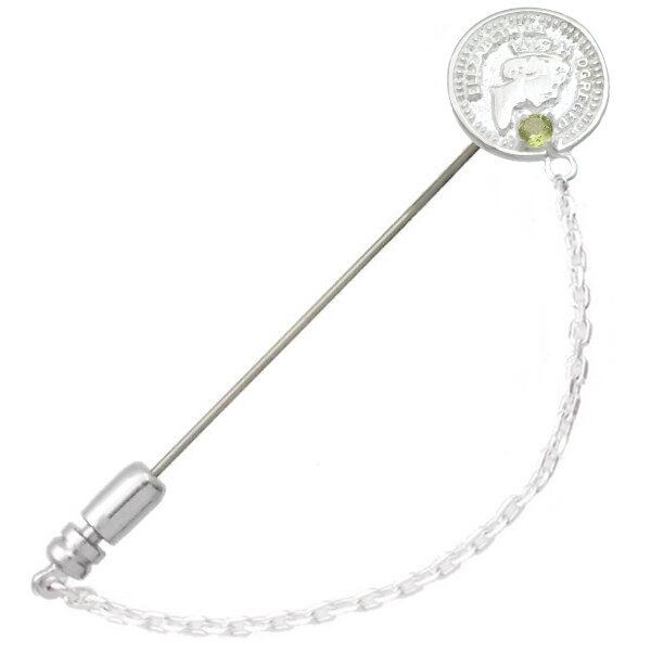 (8月)ペリドット ホワイト エリザベス コイン チェーン シルバー ラペルピン 誕生石*BK-1219