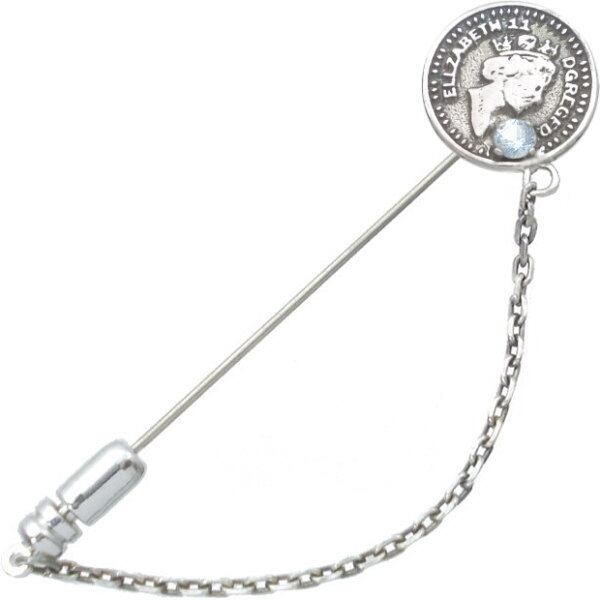 (3月)アクアマリン ブラック エリザベス コイン チェーン シルバー ラペルピン 誕生石*BK-1221