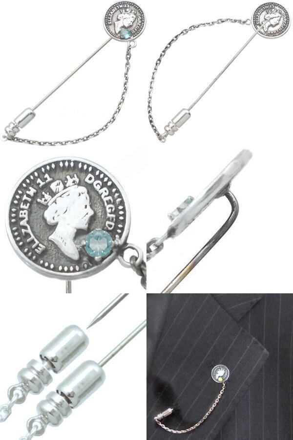 (11月)ブルートパーズ ブラック エリザベス コイン チェーン シルバー ラペルピン 誕生石*BK-1221