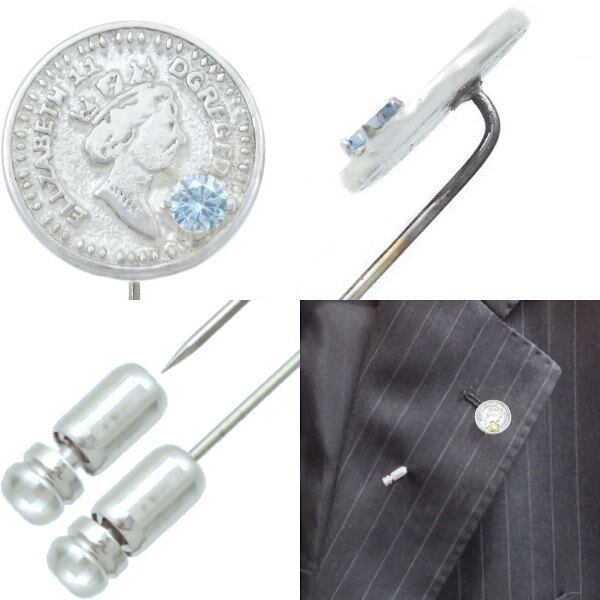 (3月)アクアマリン ホワイト エリザベス コイン シルバー ラペルピン 誕生石*BK-1220