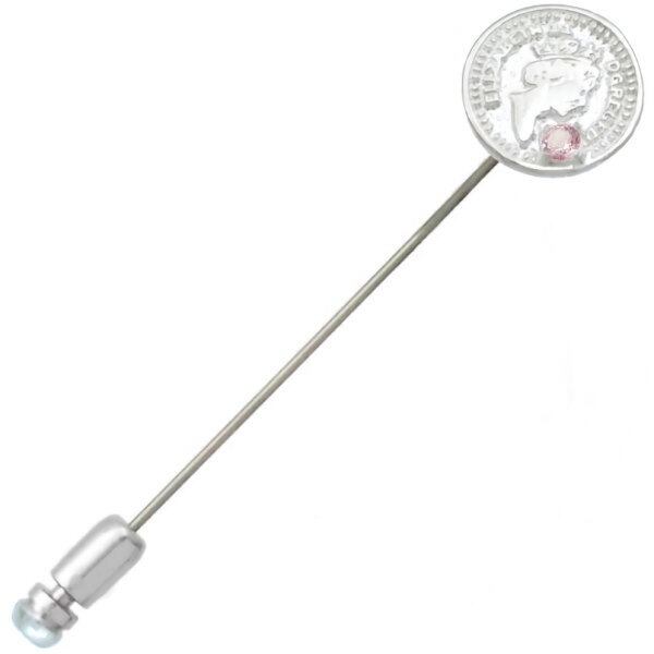 (10月)ピンクトルマリン ホワイト エリザベス コイン シルバー ラペルピン 誕生石*BK-1220