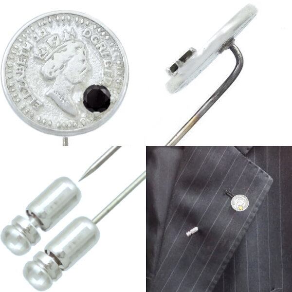 ブラックCZ ホワイト エリザベス コイン シルバー ラペルピン*BK-1220