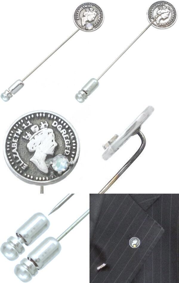 (6月)ブルームーンストーン ブラック エリザベス コイン シルバー ラペルピン 誕生石*BK-1222