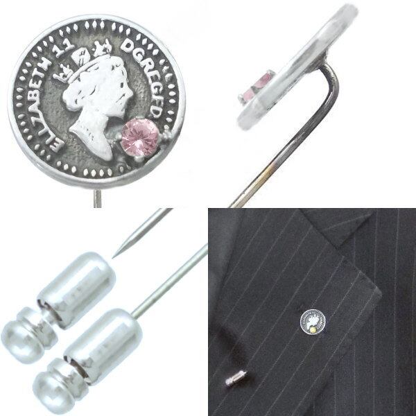 (10月)ピンクトルマリン ブラック エリザベス コイン シルバー ラペルピン 誕生石*BK-1222