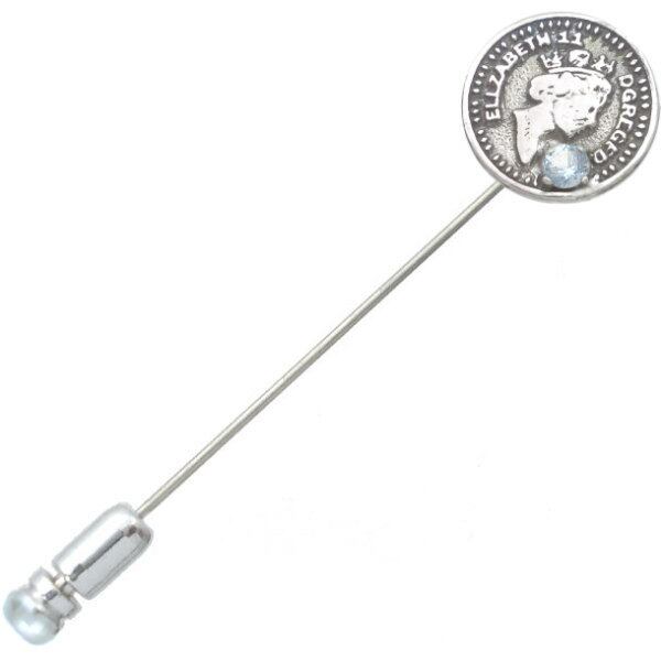 ★エリザベス女王のシルエットの小さめコインと誕生石のワンポイント。