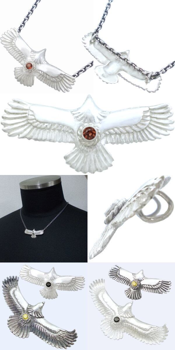 ネイティブの定番人気イーグルの背にツイステッドワイヤーで飾ったバースデーストーンをセッテイング。迫力とリアルなラージサイズとは対照的にカジュアルなサイズとアレンジ。