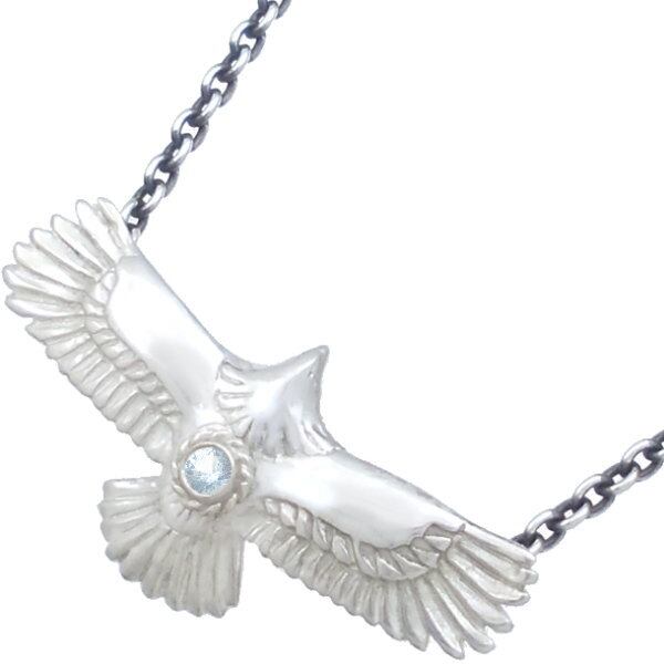 (3月)アクアマリン ホワイト ミディアム イーグル シルバー ペンダントトップ 誕生石*BP-1065
