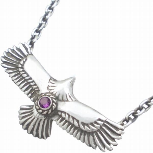 ネイティブの定番人気イーグルの背にツイステッドワイヤーで飾ったバースデーストーンをセッテイング。迫力とリアルなラージサイズとは対照的にカジュアルなサイズとアレンジ。