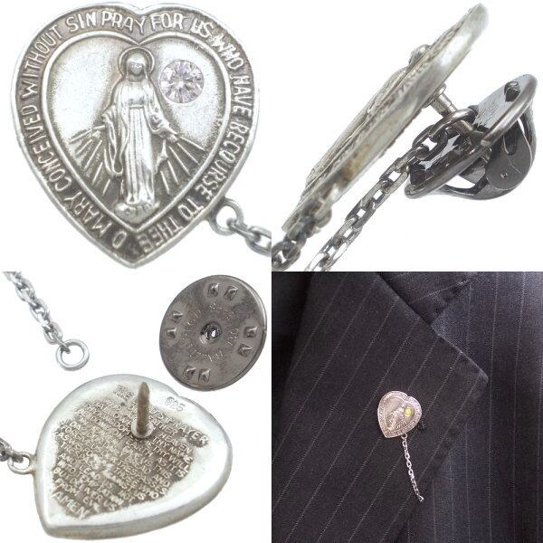 (4月)ジルコニア ホワイト ハート マリア チェーン シルバーピンバッジ ピンズ 誕生石*BK-1125