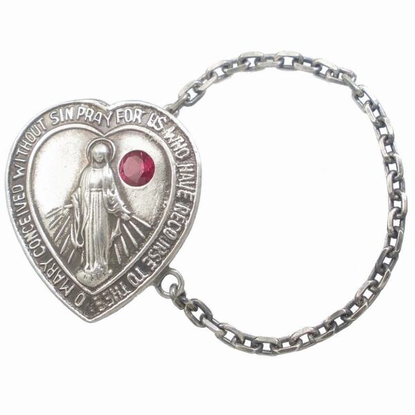 (7月)ルビー ホワイト ハート マリア チェーン シルバーピンバッジ ピンズ 誕生石*BK-1125