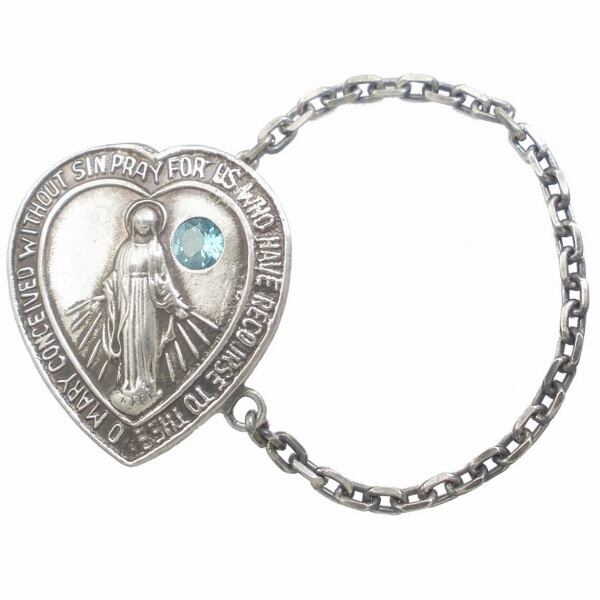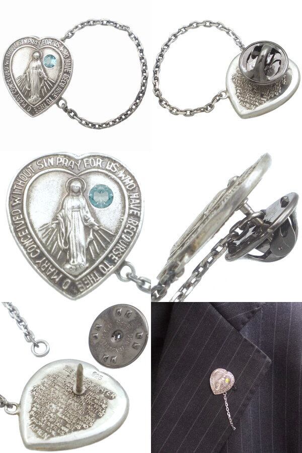 (11月)ブルートパーズ ホワイト ハート マリア チェーン シルバーピンバッジ ピンズ 誕生石*BK-1125