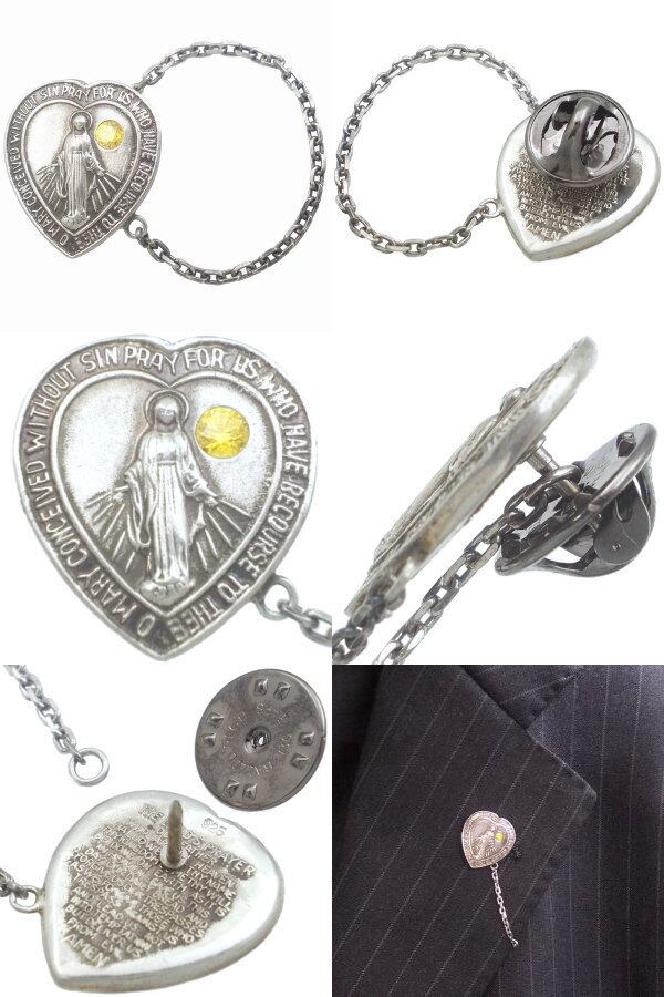イエローC Z ホワイト ハート マリア チェーン シルバーピンバッジ ピンズ*BK-1125