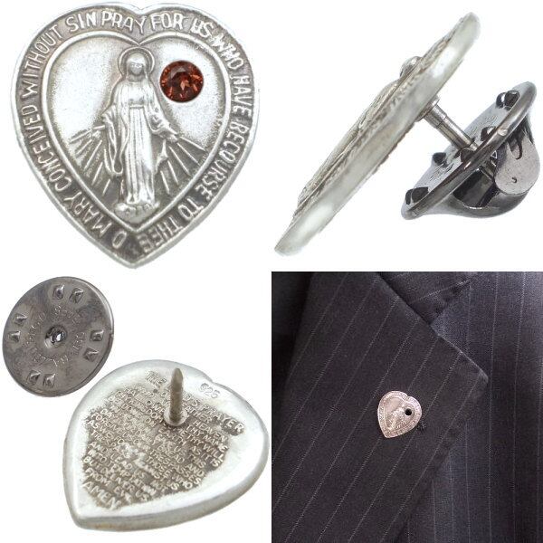 (1月)ガーネット ハート マリア シルバーピンバッジ ピンズ 誕生石*BK-1126
