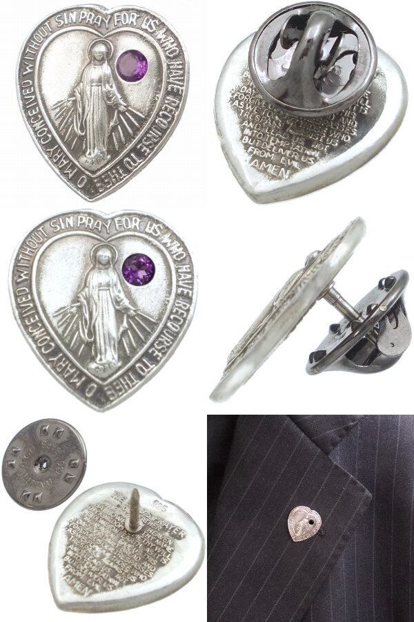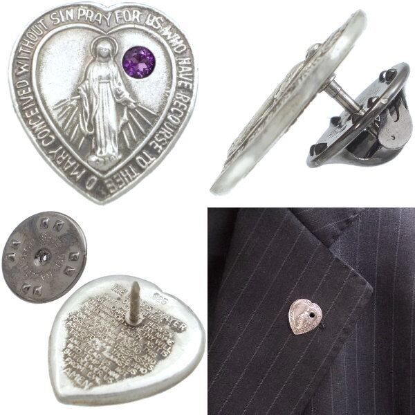 (2月)アメジスト ホワイト ハート マリア シルバーピンバッジ ピンズ 誕生石*BK-1126