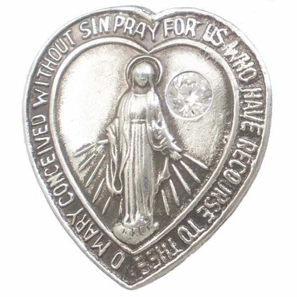 (4月)ジルコニア ホワイト ハート マリア シルバーピンバッジ ピンズ 誕生石*BK-1126