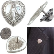 ★ハート型のメダイと誕生石のさり気ないピンバッヂ。