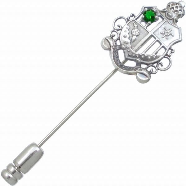 (5月)エメラルドグラス ホワイト シールド エンブレム シルバーラペルピン 誕生石*BK-1223