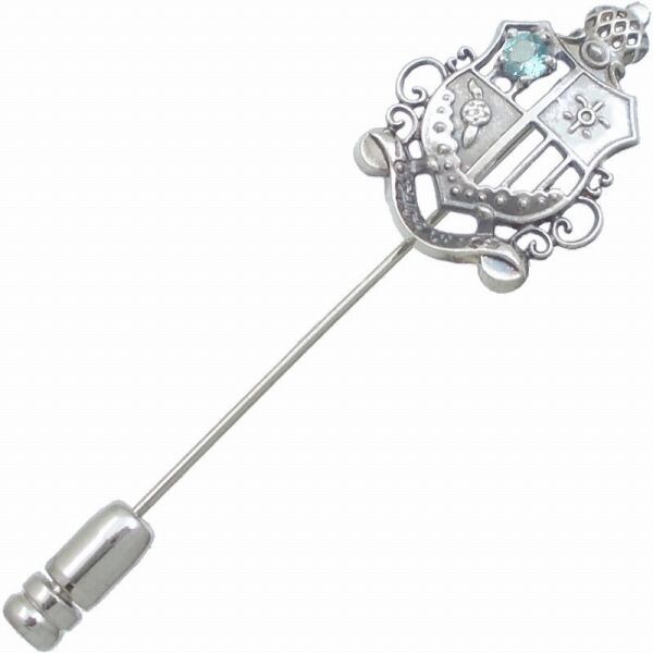 (11月)ブルートパーズ ホワイト シールド エンブレム シルバーラペルピン 誕生石*BK-1223
