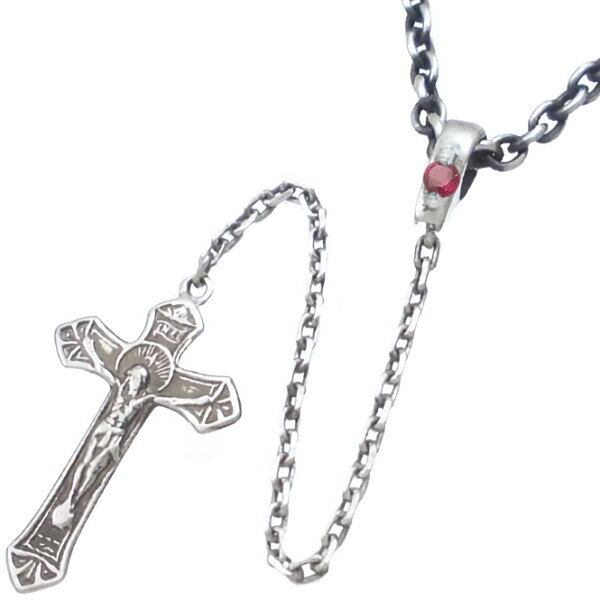 (7月)ルビー ロザリオ クロス シルバーペンダントトップ 誕生石*BP-1071