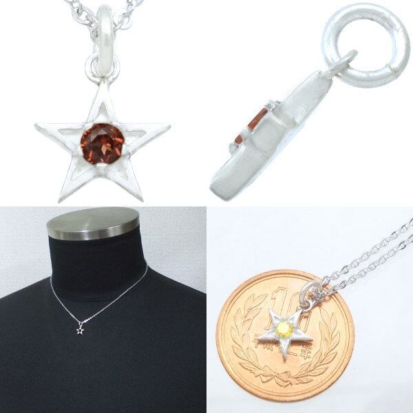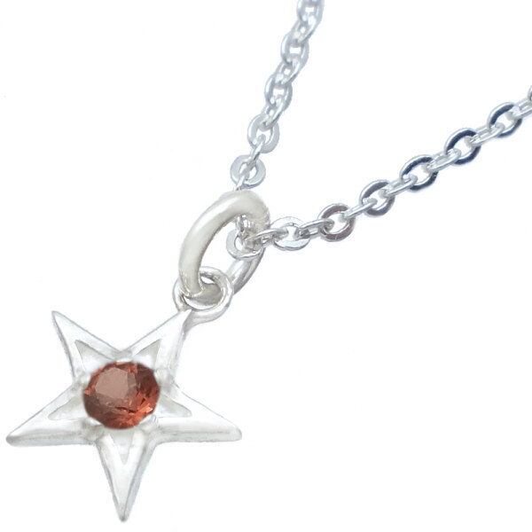 (1月)ガーネット ホワイト タイニー スター シルバーチャームネックレス 誕生石*BP-1073