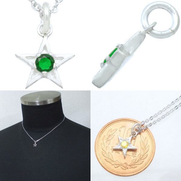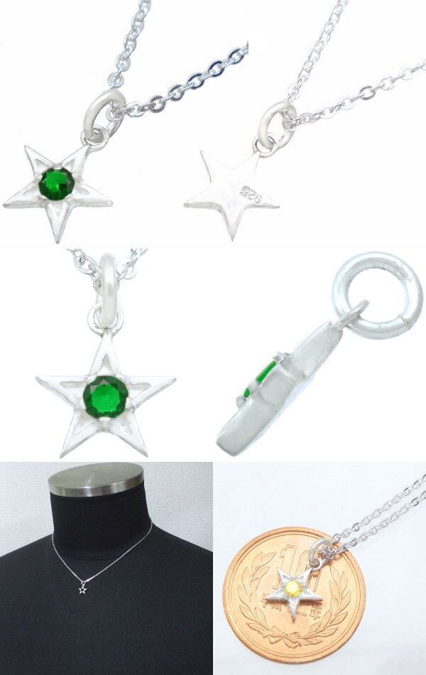 (5月)エメラルドグラス ホワイト タイニー スター シルバーチャームネックレス 誕生石*BP-1073