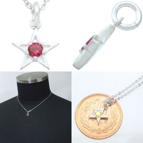 (7月)ルビー ホワイト タイニー スター シルバーチャームネックレス 誕生石*BP-1073