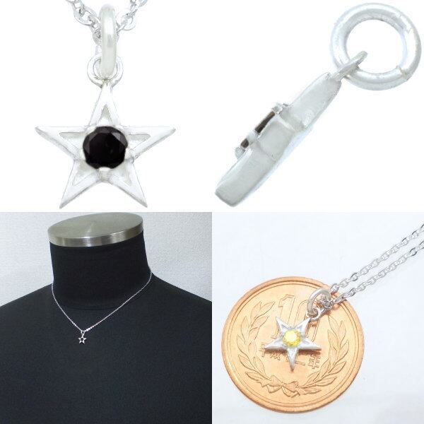 ブラックCZ ホワイト タイニー スター シルバーチャームネックレス*BP-1073