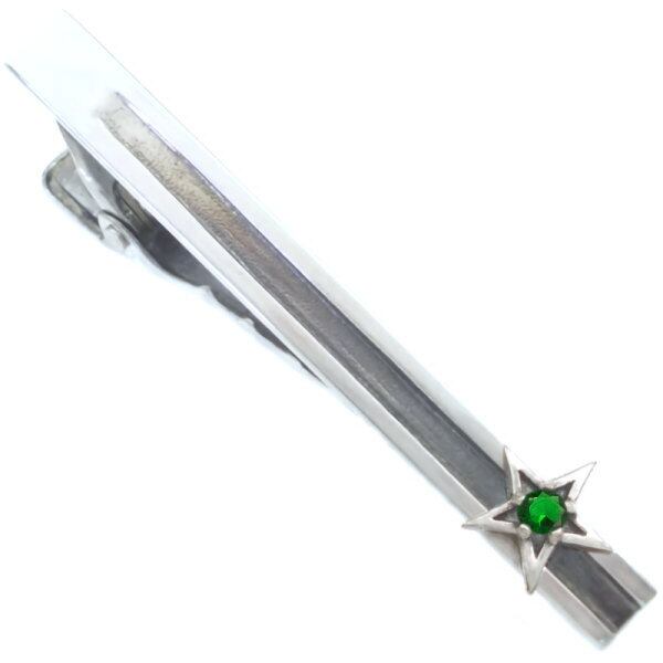 小さな星の真ん中にこだわりの5本爪で誕生石をセッティングしたシルバーネクタイピン。適度な厚みと立体感でしっかり存在を強調してくれます。