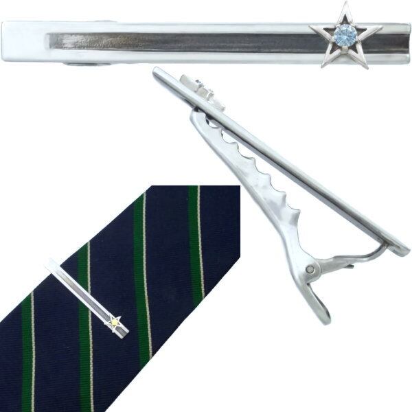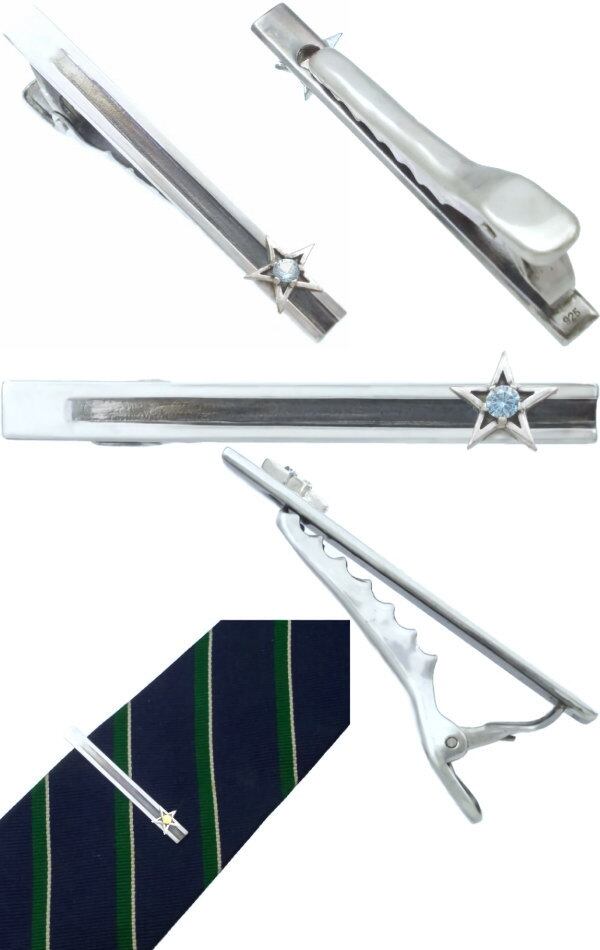 小さな星の真ん中にこだわりの5本爪で誕生石をセッティングしたシルバーネクタイピン。適度な厚みと立体感でしっかり存在を強調してくれます。