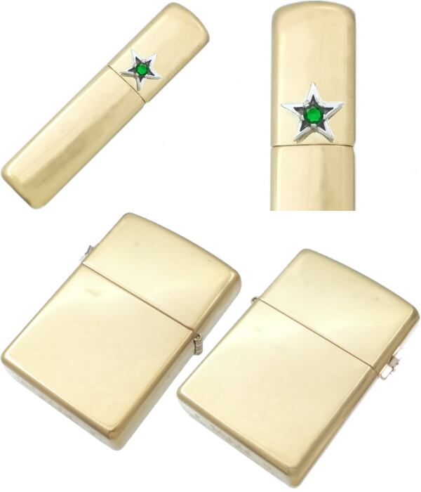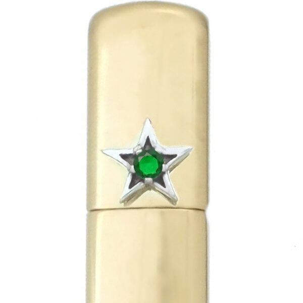 (5月)エメラルドグラス タイニー スター リッド ブラスジッポ 誕生石*BZ-1079