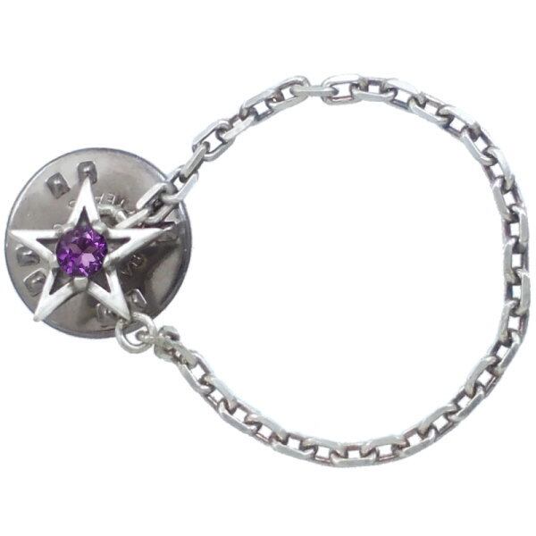 (2月)アメジスト ブラック タイニー スター チェーン シルバーピンバッジ ピンズ 誕生石*BK-1129