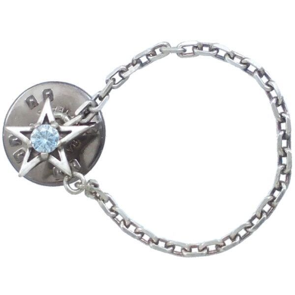 (3月)アクアマリン ブラック タイニー スター チェーン シルバーピンバッジ ピンズ 誕生石*BK-1129