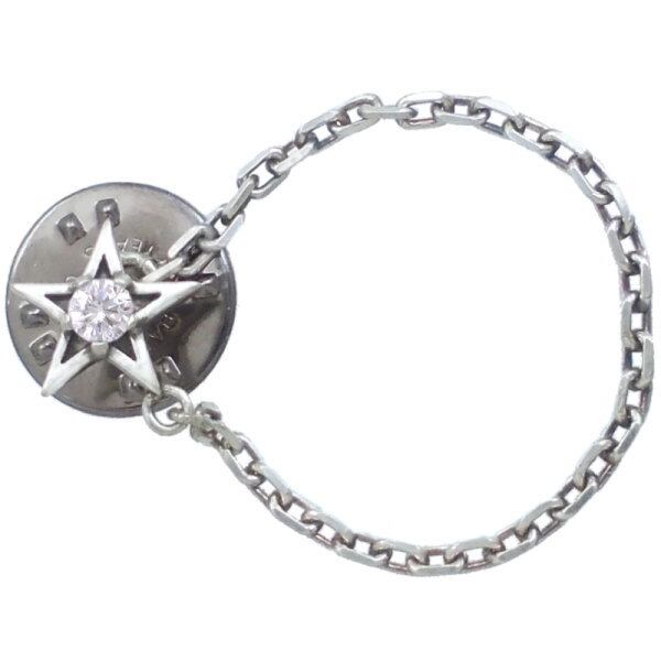 (4月)ジルコニア ブラック タイニー スター チェーン シルバーピンバッジ ピンズ 誕生石*BK-1129