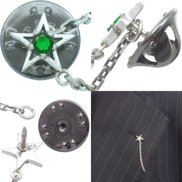 (5月)エメラルドグラス ブラック タイニー スター チェーン シルバーピンバッジ ピンズ 誕生石*BK-1129