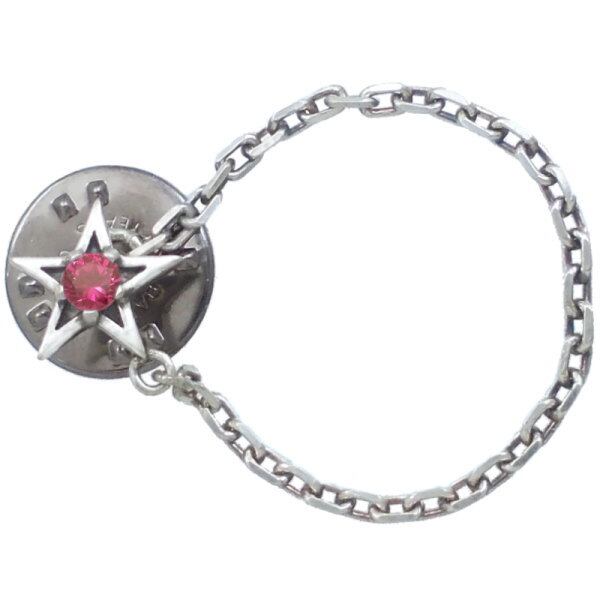 (7月)ルビー ブラック タイニー スター チェーン シルバーピンバッジ ピンズ 誕生石*BK-1129