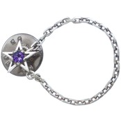 小さな星の真ん中にこだわりの5本爪で誕生石をセッティングしたエレガントなチェーン付ピンズ。
