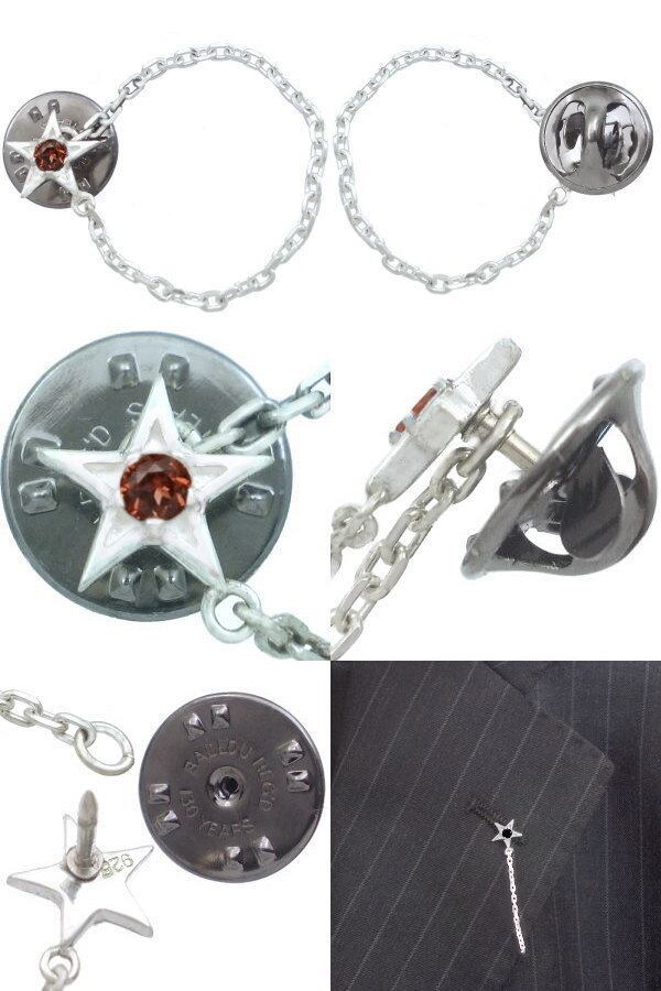 (1月)ガーネット ホワイト タイニー スター チェーン シルバーピンバッジ ピンズ 誕生石*BK-1130